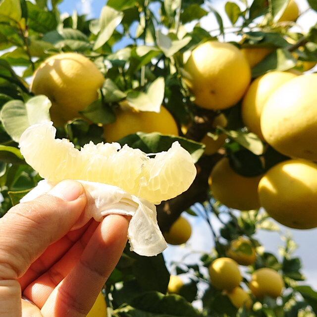 外観品質の比較的きれいな土佐文旦が、「秀品」になります。贈り物にも向いています。中玉の2Lサイズです。中玉のため、大玉に比べ味が濃く、園主の一番好きなサイズの土佐文旦です。